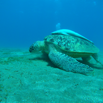Scientists currently recognize seven living species of sea turtles worldwide, five of which can be found in the Red Sea: the green turtle , the hawksbill turtle, the leatherback turtle , the loggerhead turtle and the olive-ridley turtle. but only three species are frequently observed in the Red Sea and they are: